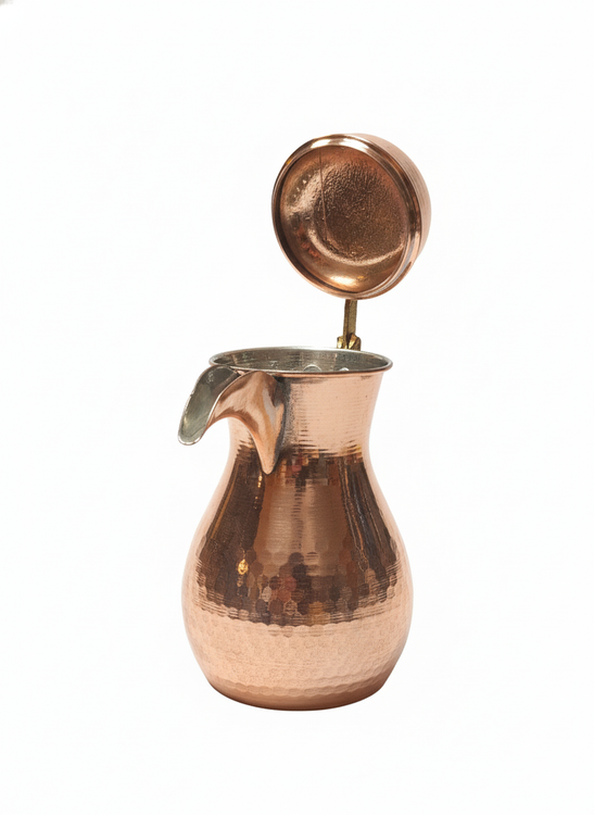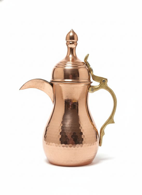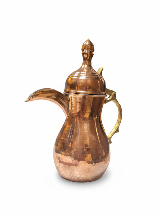 دله عربی مسی چکشی با درب پُر و بدنه کاملاً دستساز، یکی از خاصترین مدلهای سنتی برای دمآوری قهوه عربی است.