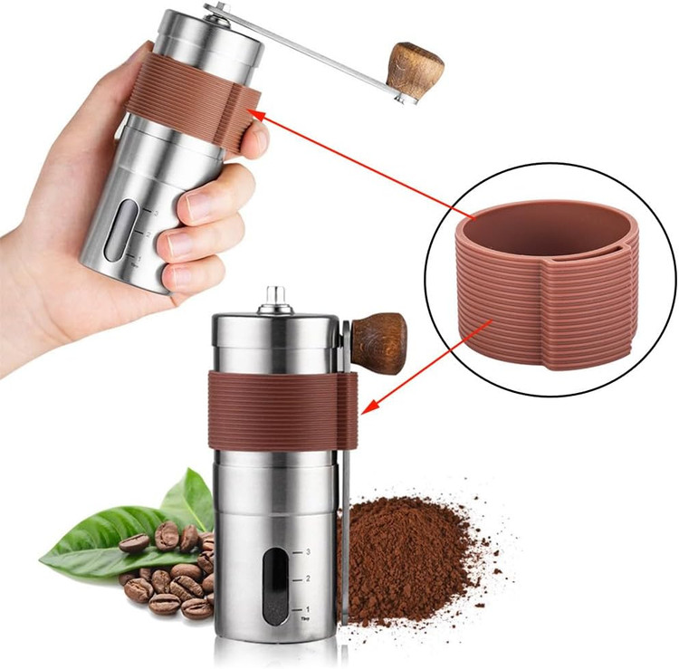 تیغه قابل تنظیم: بله آسیاب دستی استیل استوانه مینی دور سیلیکون یک آسیاب اقتصادی و با کیفیت با دسته جداشونده است که مناسب آسیاب کردن قهوه از سایز اسپرسوساز خانگی با بسکت تحت فشار است تا قهوه ساز فرانسه