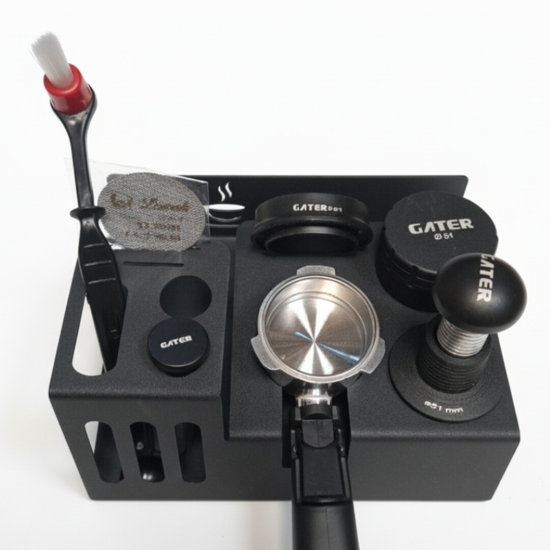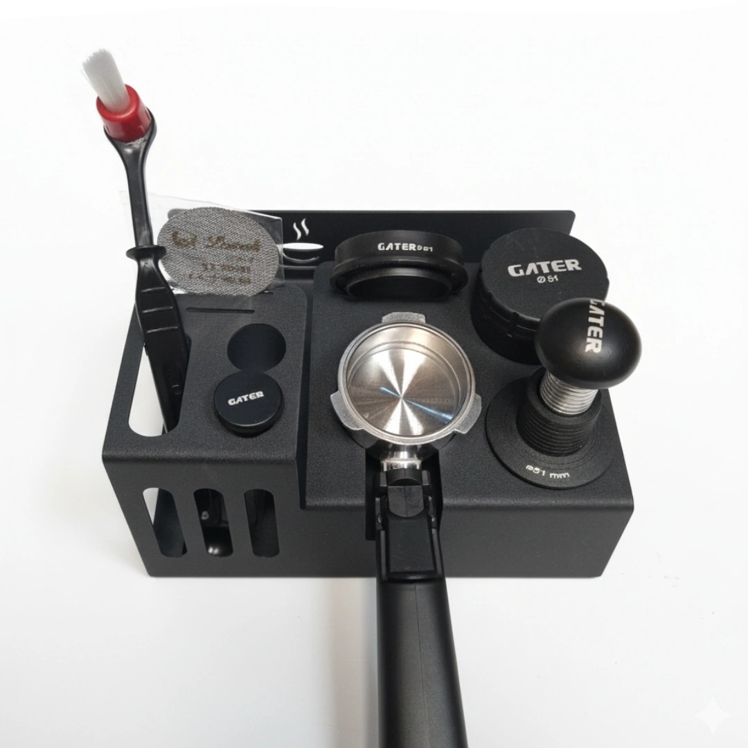 لولر سه تیکه سنگین (قابل تنظیم): جهت توزیع کاملاً یکنواخت پودر قهوه قبل از تمپ کردن.