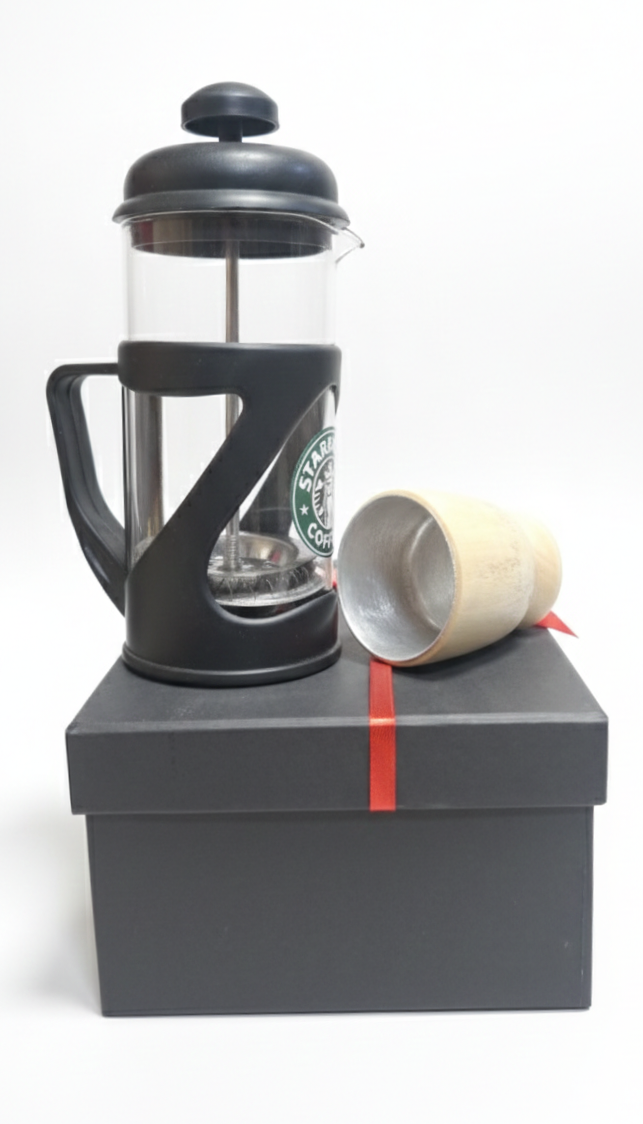 پک شامل: فرنچ پرس 350میل+شات چوب و فلز آلوم استیل