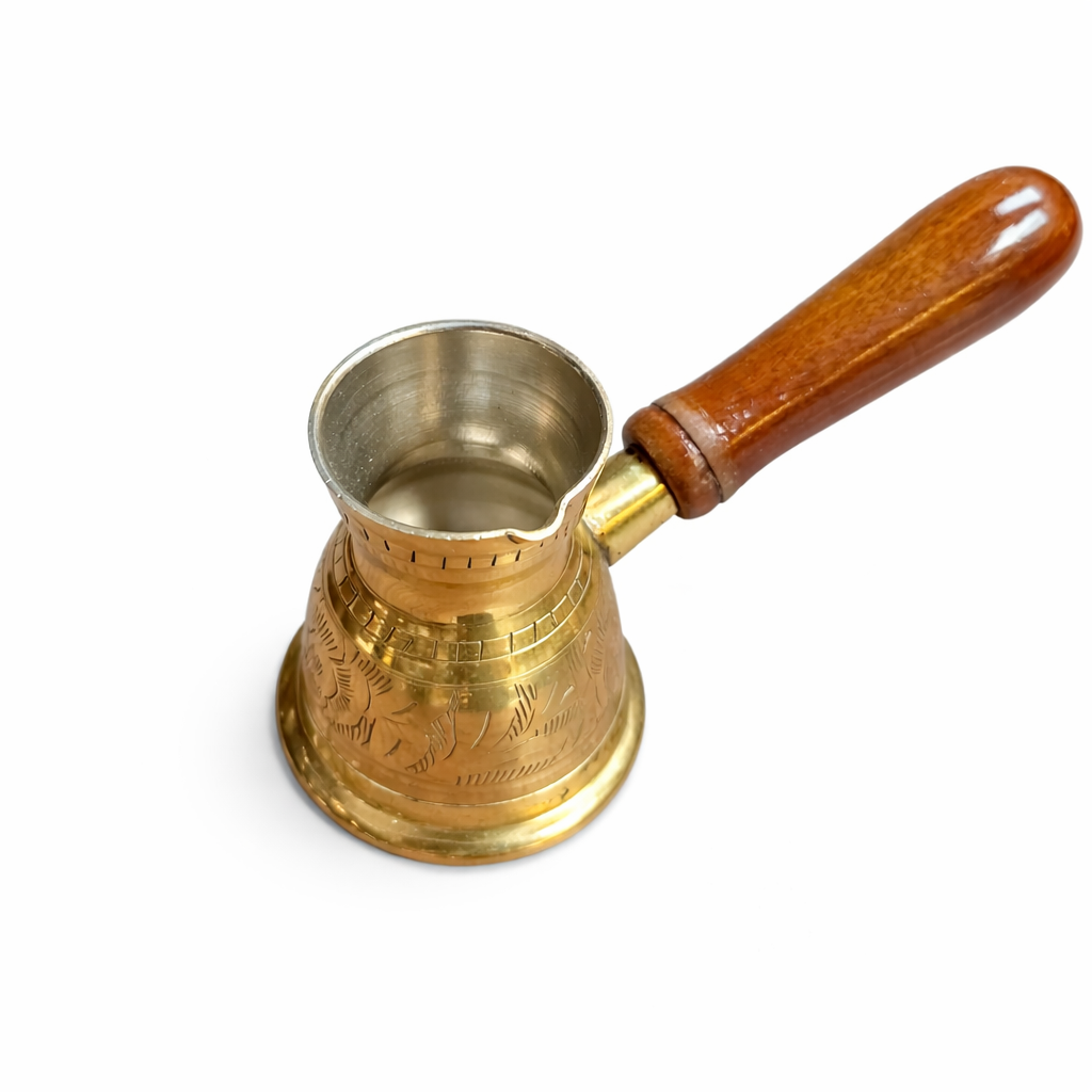 دستهبندی: قهوه جوش و دلهجنس بدنه: برنج وارداتی هندی دسته چوبیابعاد: سایزدو: 8 سانتی متر بدون احتساب دسته
