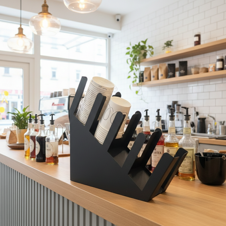 آیا از شلوغی میز کار و پیشخوان کافه خسته شدهاید؟ هولدر چندمنظوره سیروپ و لیوان، راه حلی هوشمندانه برای باریستاهایی است که به جزئیات اهمیت میدهند. این استند با طراحی پلکانی و متریال مقاوم، نه تنها دسترسی شما به شیشههای سیروپ و لیوانهای یکبار مصرف را سریعتر میکند، بلکه ظاهری حرفهای و منظم به دکوراسیون کافه شما میبخشد.